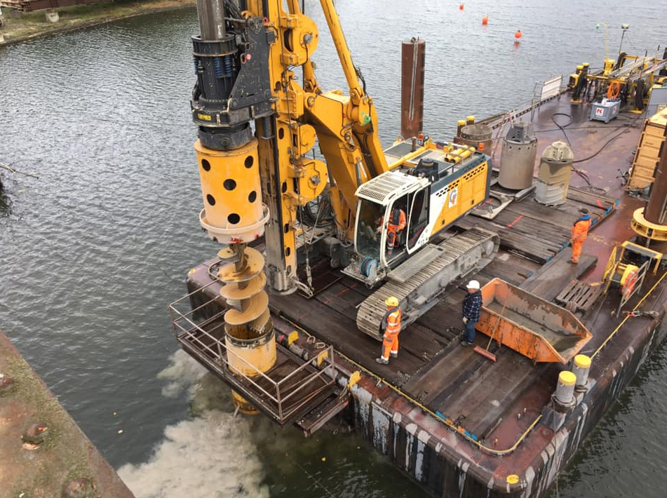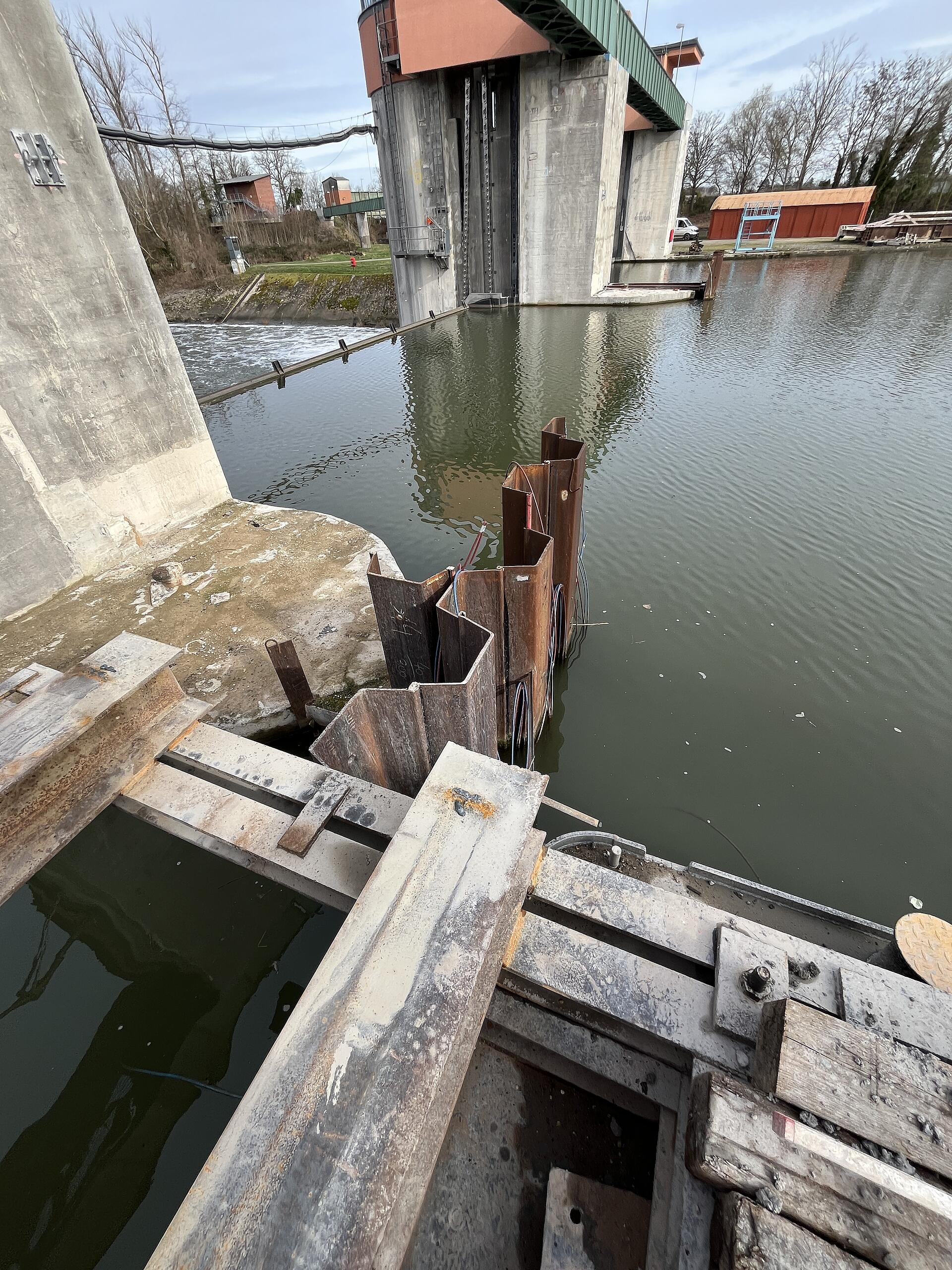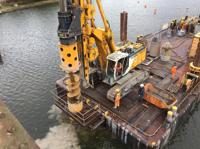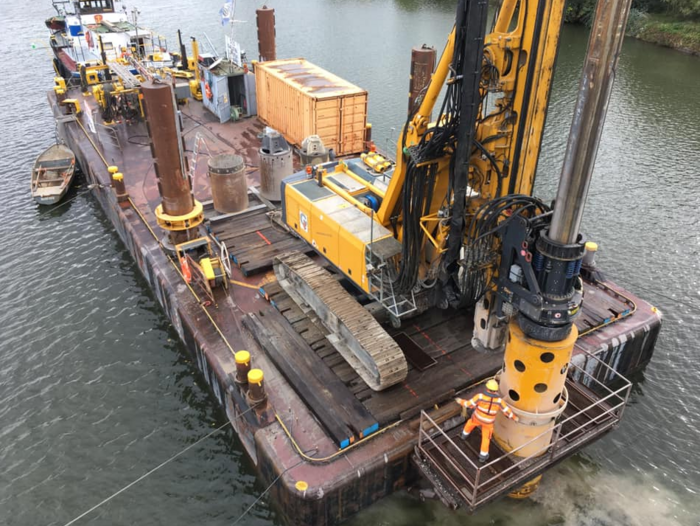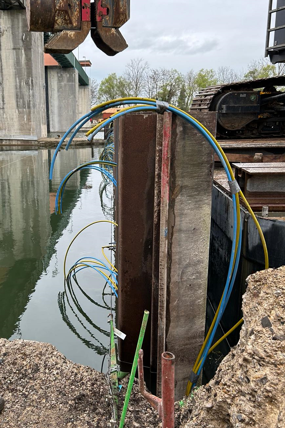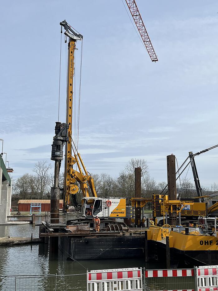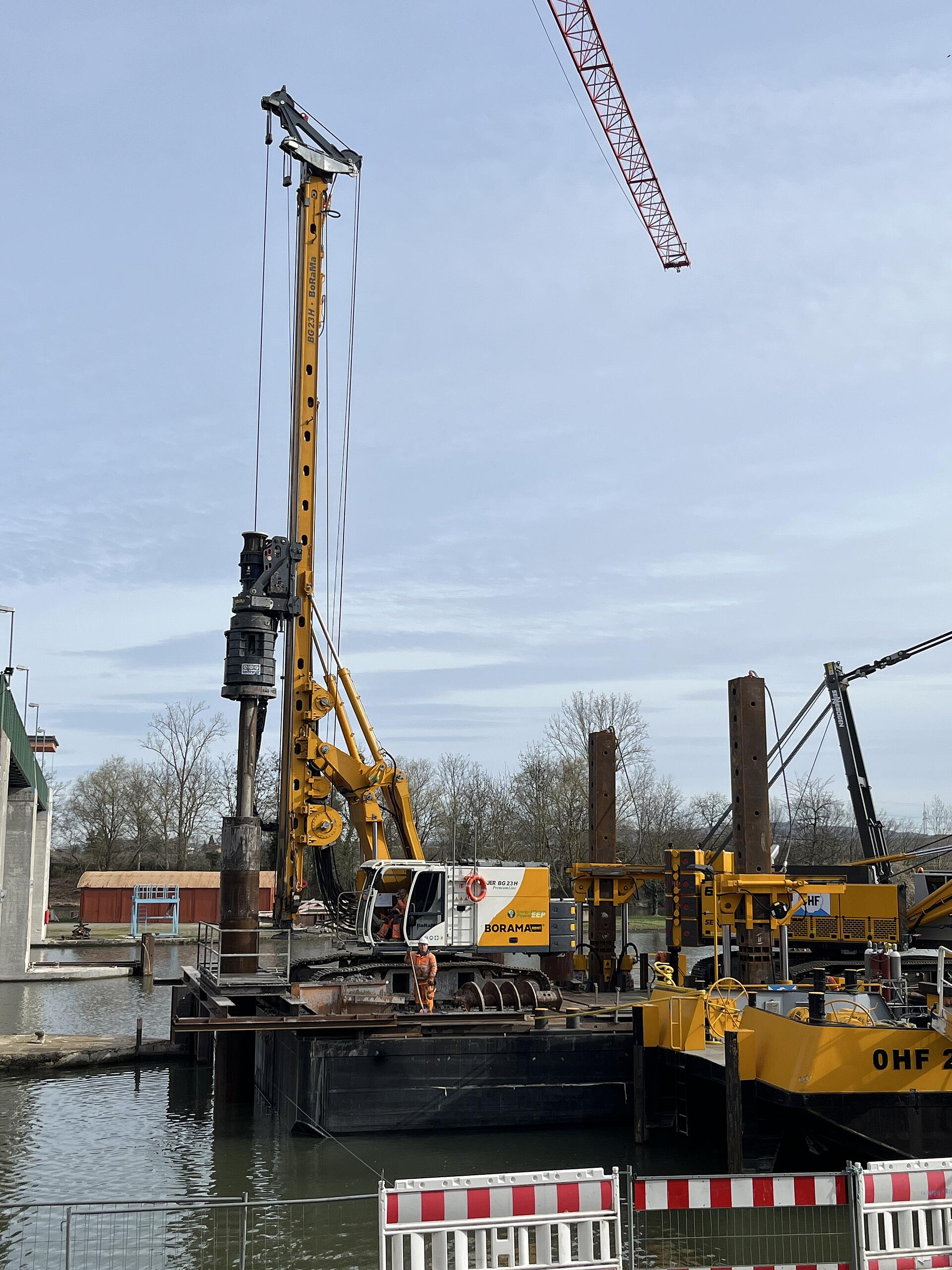 Im Auftrag der Heberger Hoch-, Tief- u. Ingenieurbau GmbH haben wir im Oberen Wehr in Horkheim Spundwände eingebracht um eine trockene Baugrube für die Sanierungsarbeiten des Kraftwerks Horkheims zu schaffen.
