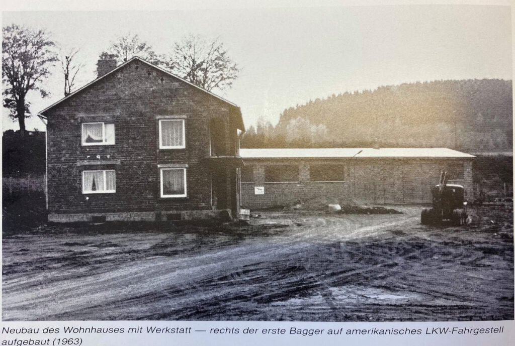 Unser kleiner Rückblick beginnt mit einer Aufnahme aus dem Jahr 1963, der damalige Neubau des Wohnhauses mit Werkstatt.1986 erfolgt der Anbau mit gleichzeitiger Aufstockung des Bürogebäudes und bereits 1988 entsteht am Firmengelände in Floß ein neues und größeres Werkstattgebäude. Dem folgt der Neubau der Schweißerei mit der Einweihung im Jahr 2008 und der Erweiterung 2020. 2011 erfüllt sich unser Chef seinen Kindheitstraum und platziert einen Hafenkran am Firmengelände – ein echter Blickfang.