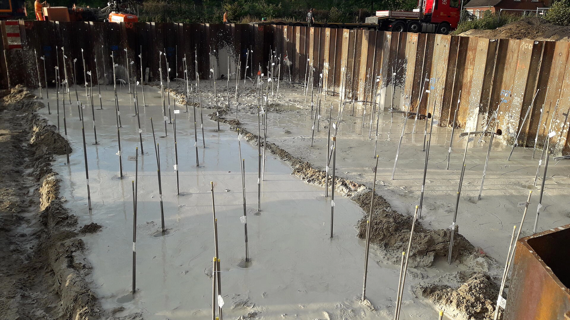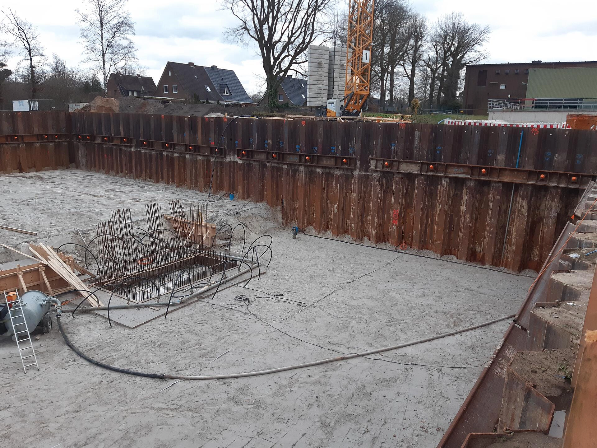 Aufgrund des hoch anstehenden Grundwassers war eine Trogbaugrube mit Spundwänden und einer Injektionssohle notwendig. Fristgerecht und zur vollsten Zufriedenheit unseres Auftraggebers konnten wir gestern die Baugrube an den Rohbauer übergeben.