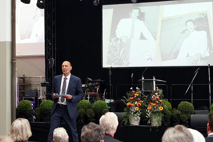 Klar, dass daher der neue „Meilenstein für die Gollwitzer Family und für Floß“, so Geschäftsführer Harald Gollwitzer, seine Frau Andrea und sein Sohn Ludwig als künftiger Nachfolger gebührend bei einem Familienfest gefeiert wurde. Rund 400 geladene Gäste aus nah und fern fanden den Weg in die nördliche Oberpfalz, darunter neben den aktuellen und bereits im Ruhestand befindlichen Mitarbeiterinnen und Mitarbeitern auch langjährige Begleiter, Vertreter der Planungsbüros und Gutachter, Gerätehersteller und Mietpartner, Baustellenpartner und der am Bau beteiligten Firmen. Besonders hieß Harald Gollwitzer seine Freunde, seine Familie, Landrat Andreas Meier, Alt-Bürgermeister Fred Lehner, Martin Schneider von der Bauindustrie sowie die beiden Flosser Pfarrer Wilfried Römischer und Max Früchtl willkommen.