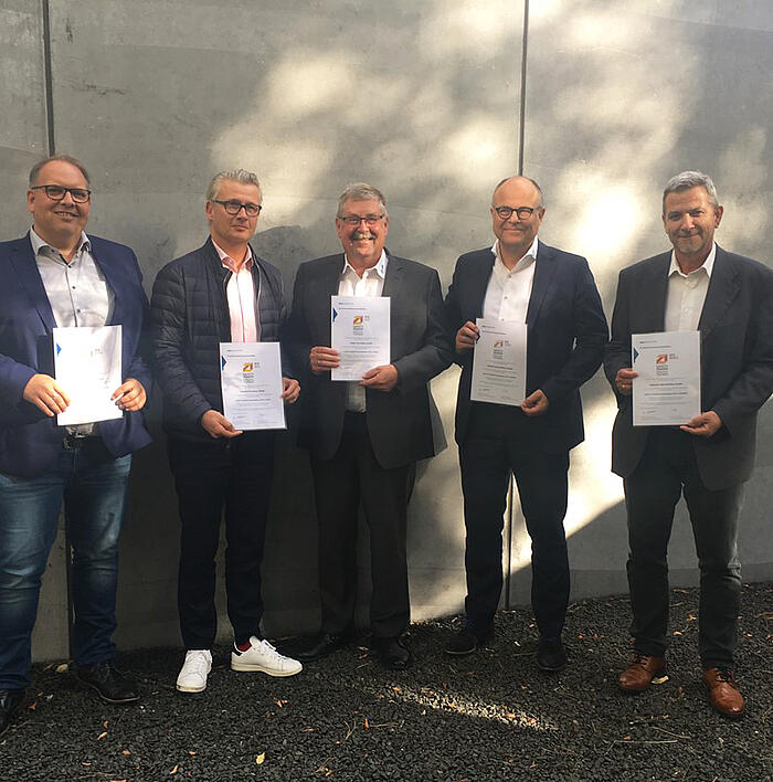 Unser Technischer Leiter Christian Stolper (1.von links) hatte die Ehre die Urkunde im Namen aller Beschäftigten der H. Gollwitzer GmbH entgegenzunehmen.